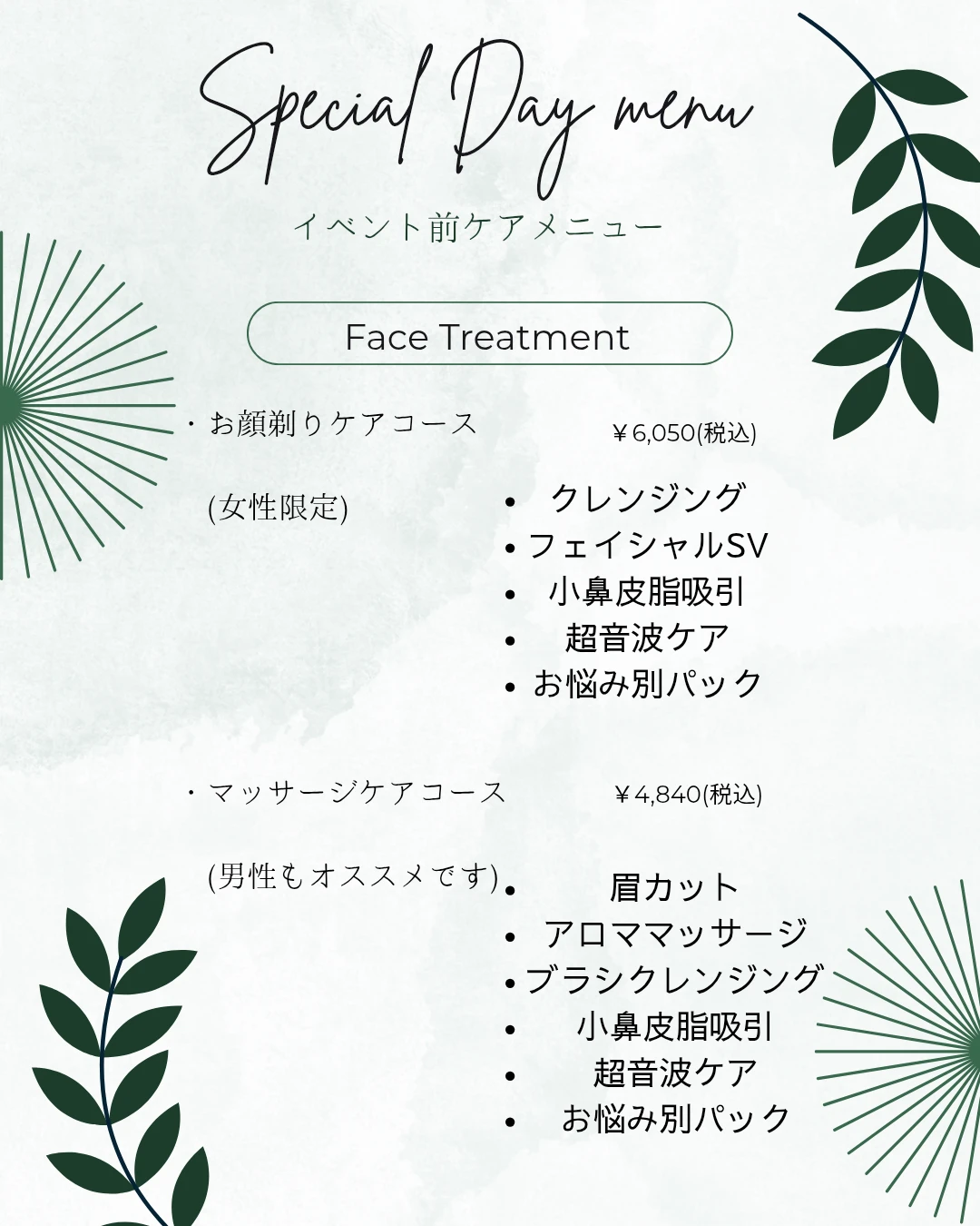 こちらもお肌がワントーン上がるケアメニューです!